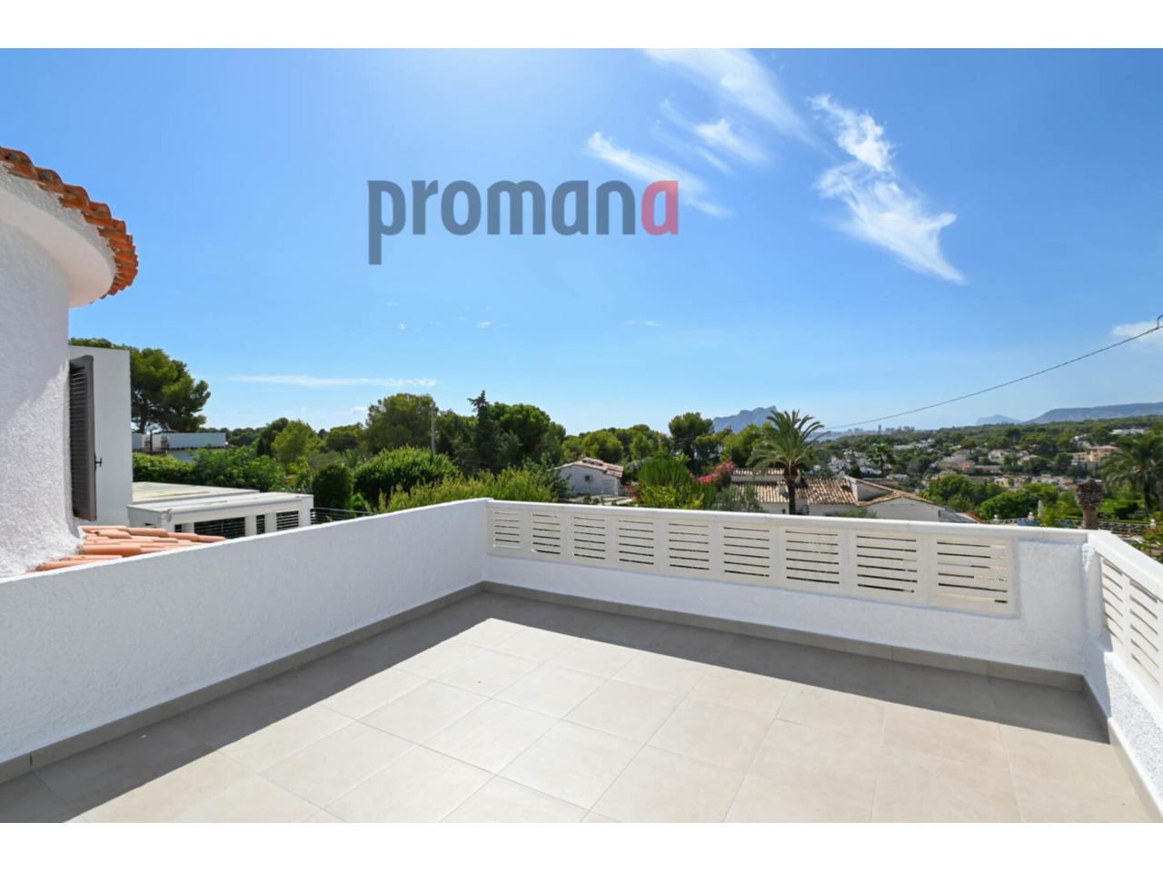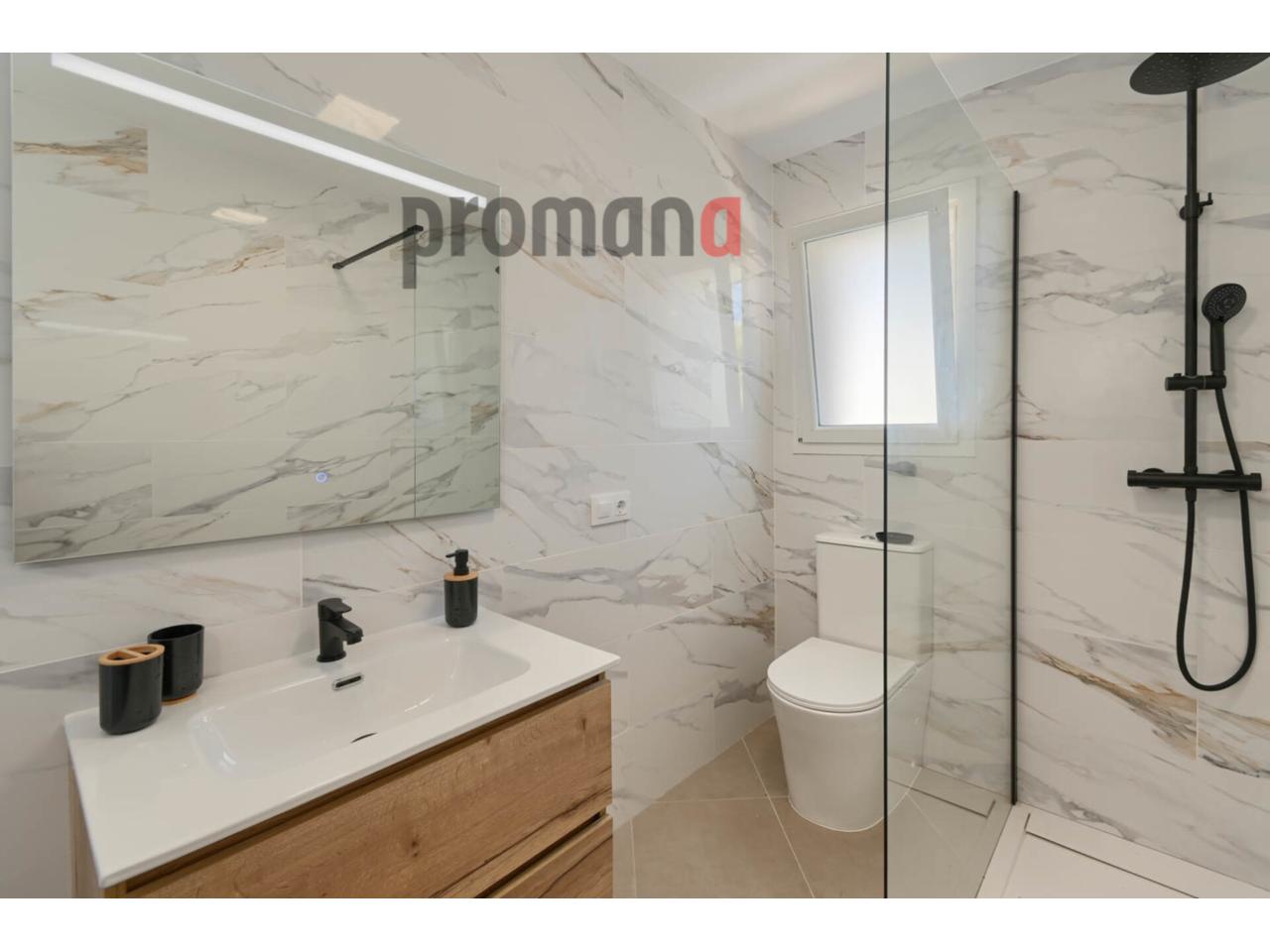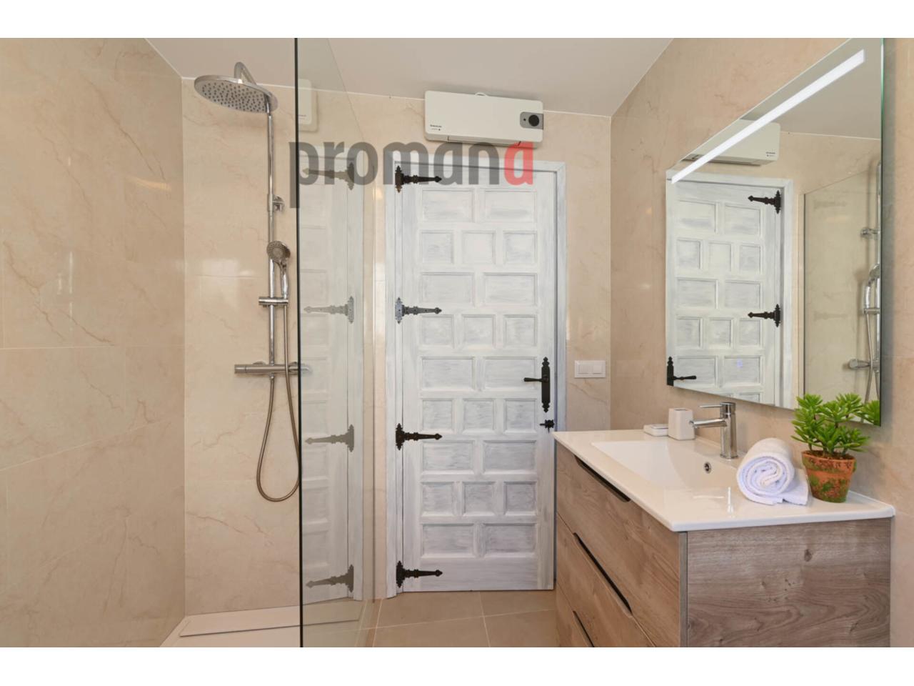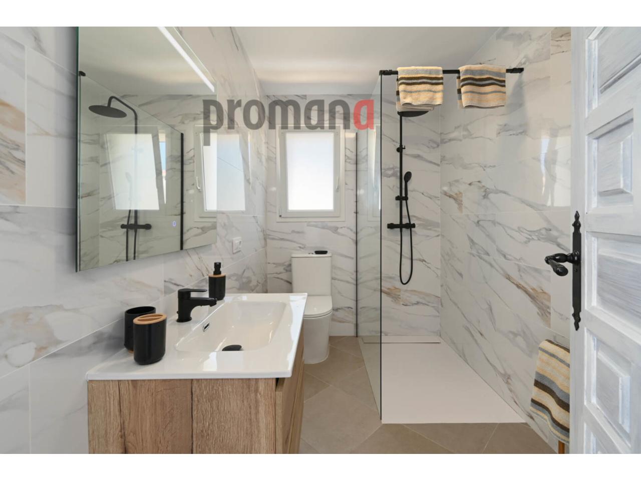 Upper Floor: A spacious master bedroom with air conditioning, a separate dressing room and a full bathroom. The standout feature of this floor is the 16 m² solarium, offering exceptional views, some of which are partially of the sea. This space can be easily expanded to create a third bedroom if needed.
